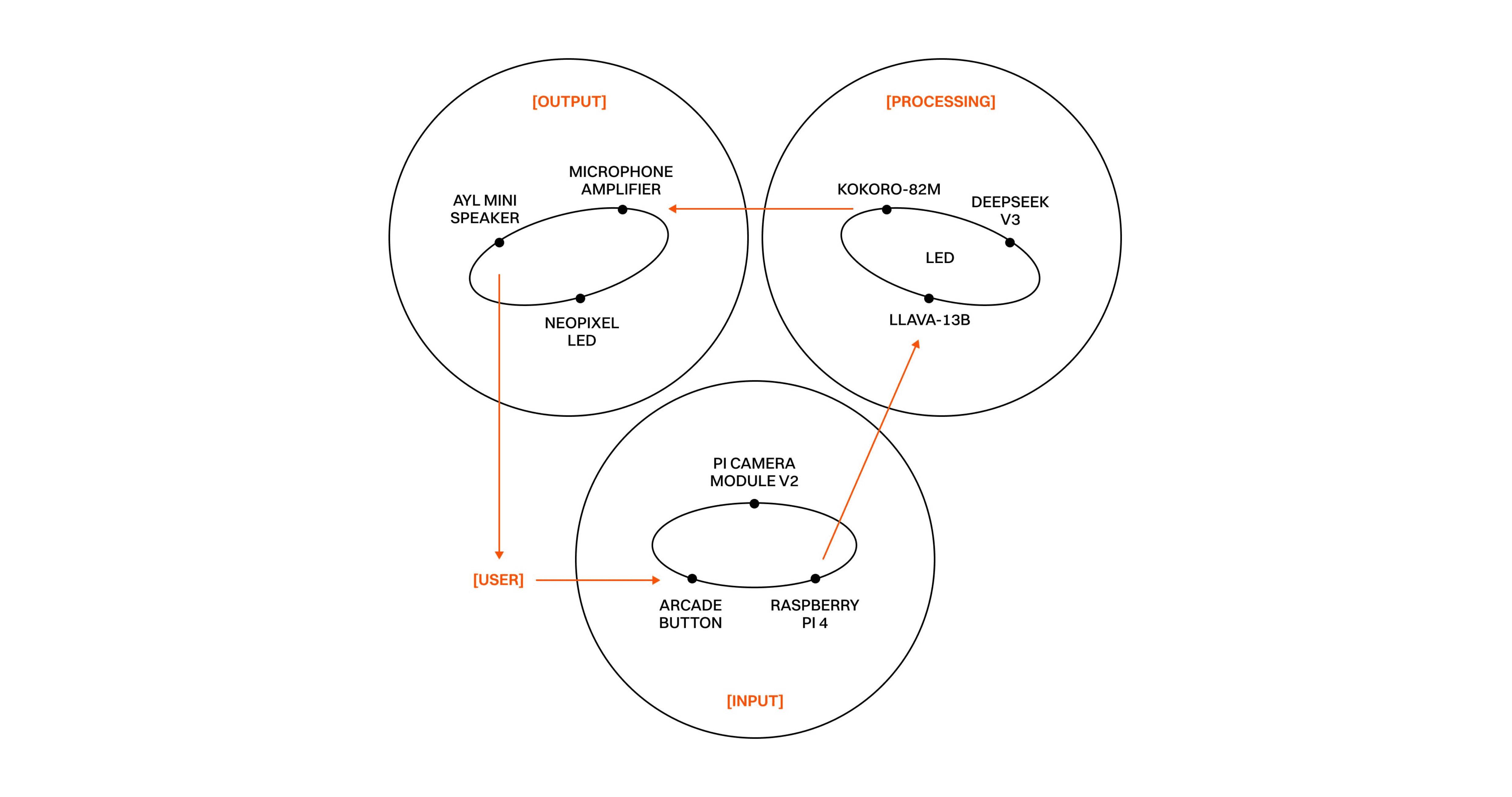 A photo is captured with the Raspberry Pi Camera, recording the user’s expression, posture, and surroundings. The image is sent to LLaVA-13B, which generates a scene description, and then to DeepSeek V3 to create an 8-line free verse poem. Finally, Kokoro-82m converts the text into a human-like spoken voice, delivering a witty, spoken poem that humorously reflects the user and their environment.